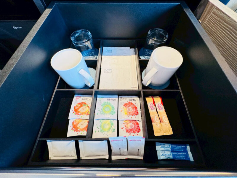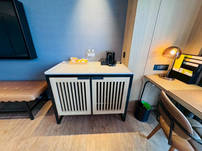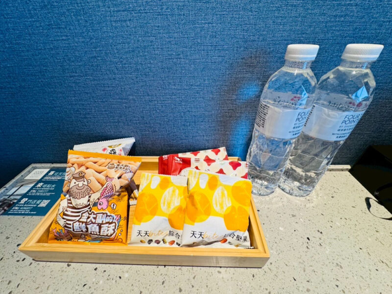 フォーポイントバイシェラトン台北八里に、クラブラウンジはありません。特にドリンクサービス等もありませんでしたが、宿泊者にお部屋のドリンクやスナックが無料なのは嬉しいですね。