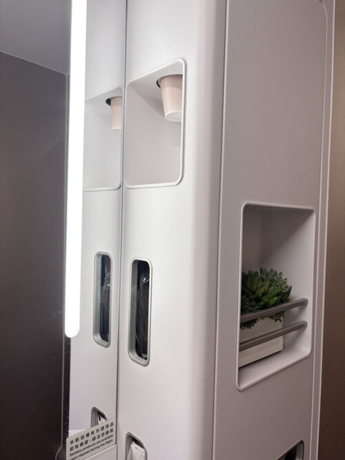 トイレのチェック。さりげなくグリーンが飾られていたり、ハンドクリームの用意もあり清潔に保たれています。