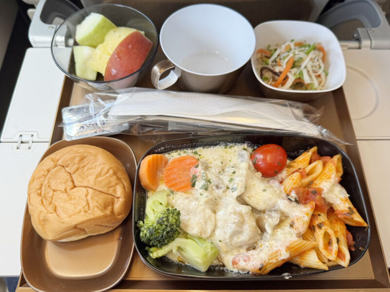 関空→台北の機内食は、飛行時間の兼ね合いもあるのでしょうか。メニューは1種類のみでした。