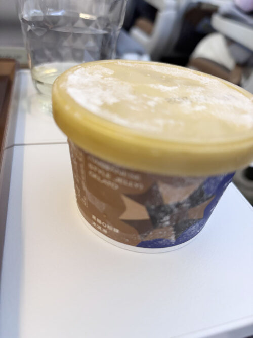 短いフライトでも、クッションやブランケットが用意されていたり、丁寧な接客のサービスが評判とおりで納得。機内食の中でも、特にデザートへの思い入れが強く感じられました。