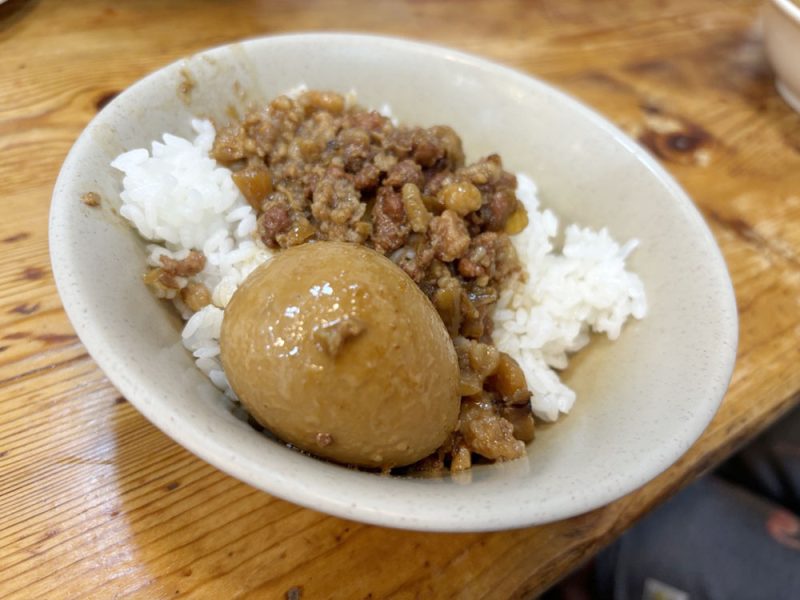 色んなローカルグルメを頼みたかったのですが、大きなジーパイを食べた後だったので、滷肉飯(ルーローハン)の小サイズを1人ずつ注文。